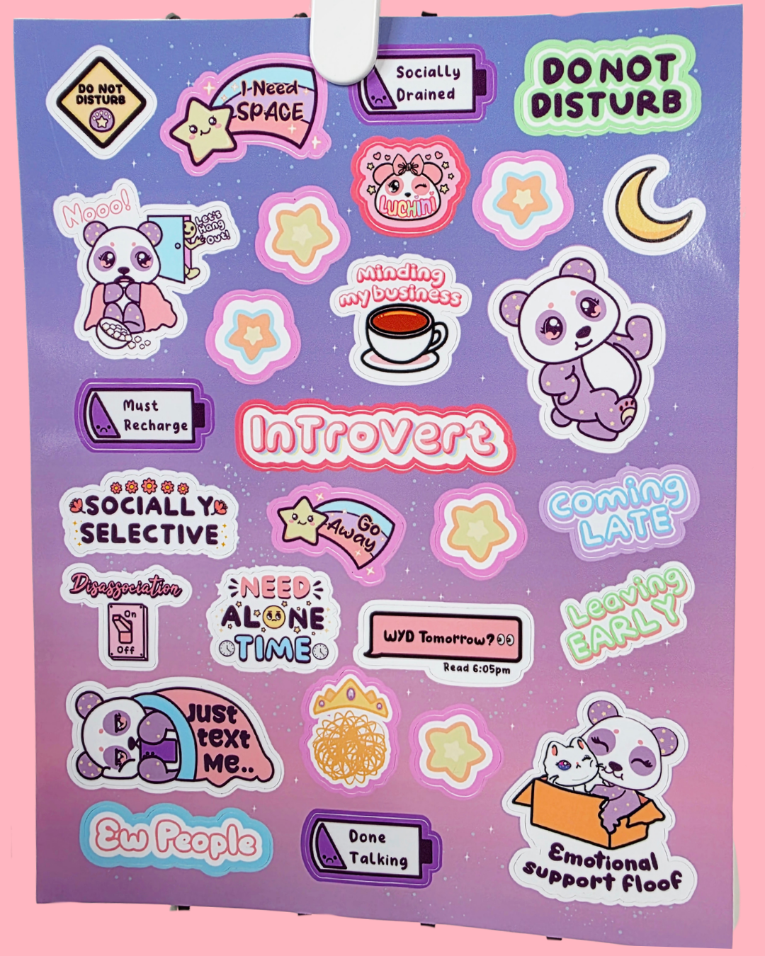 This Luna-themed 8.5" x 11" introvert sheet was made for the girlies who get overwhelmed, need quiet to recharge, and use cute things to cope when life gets loud.